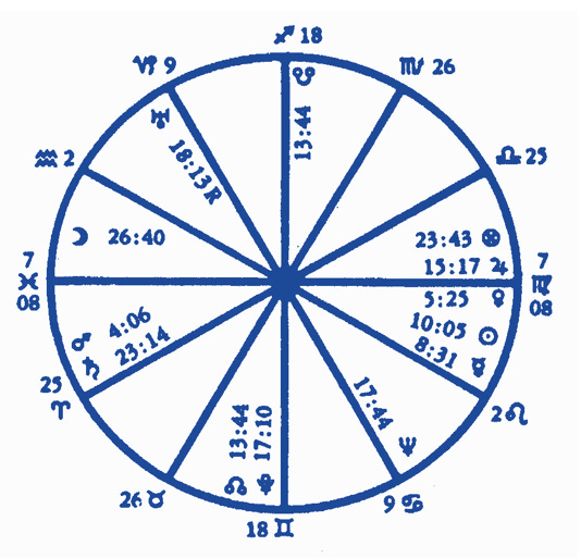 In ognuno dei dodici mesi il Sole sembra attraversare un certo gruppo di stelle zodiacali, che sono state quindi suddivise in dodici “segni” naturali dello zodiaco. Gli astrologi parlano anche di dodici “case”, e per il principiante è spesso un rompicapo distinguere tra questi “segni” e “case” e capire la loro relazione reciproca nell’oroscopo. Cercheremo quindi di chiarire la questione nel modo più chiaro possibile. Procuratevi un’arancia, una mela o qualsiasi altro oggetto morbido a forma di sfera e sei lunghi ferri da maglia. Forate la palla con essi in modo tale da farli assomigliare ai dodici raggi di una ruota. La palla rappresenterà la Terra e le parti sporgenti degli aghi saranno le linee di demarcazione tra casa e casa; ogni casa si trova tra due aghi.