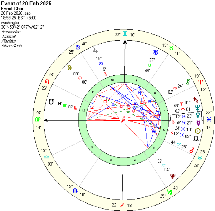 Il 28 febbraio 2026, gli Stati Uniti e Israele hanno lanciato attacchi militari contro l’Iran. Al di là delle motivazioni ufficiali, la cui veridicità può essere oggetto di dibattito, il conflitto si inserisce in un complesso quadro astrologico e psicologico.